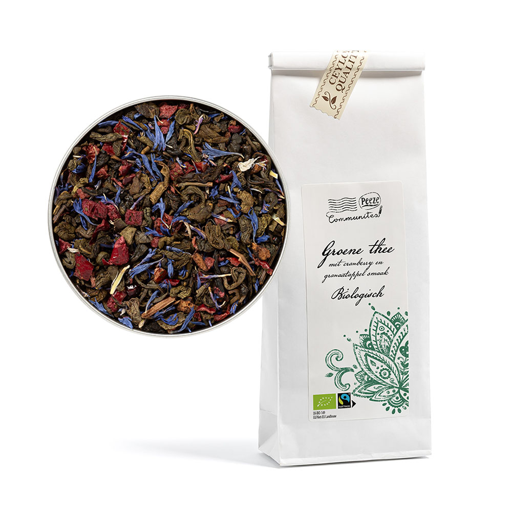 Groene thee met een bittertje en een fruitig zoet accent door de combinatie met stukjes fruit.